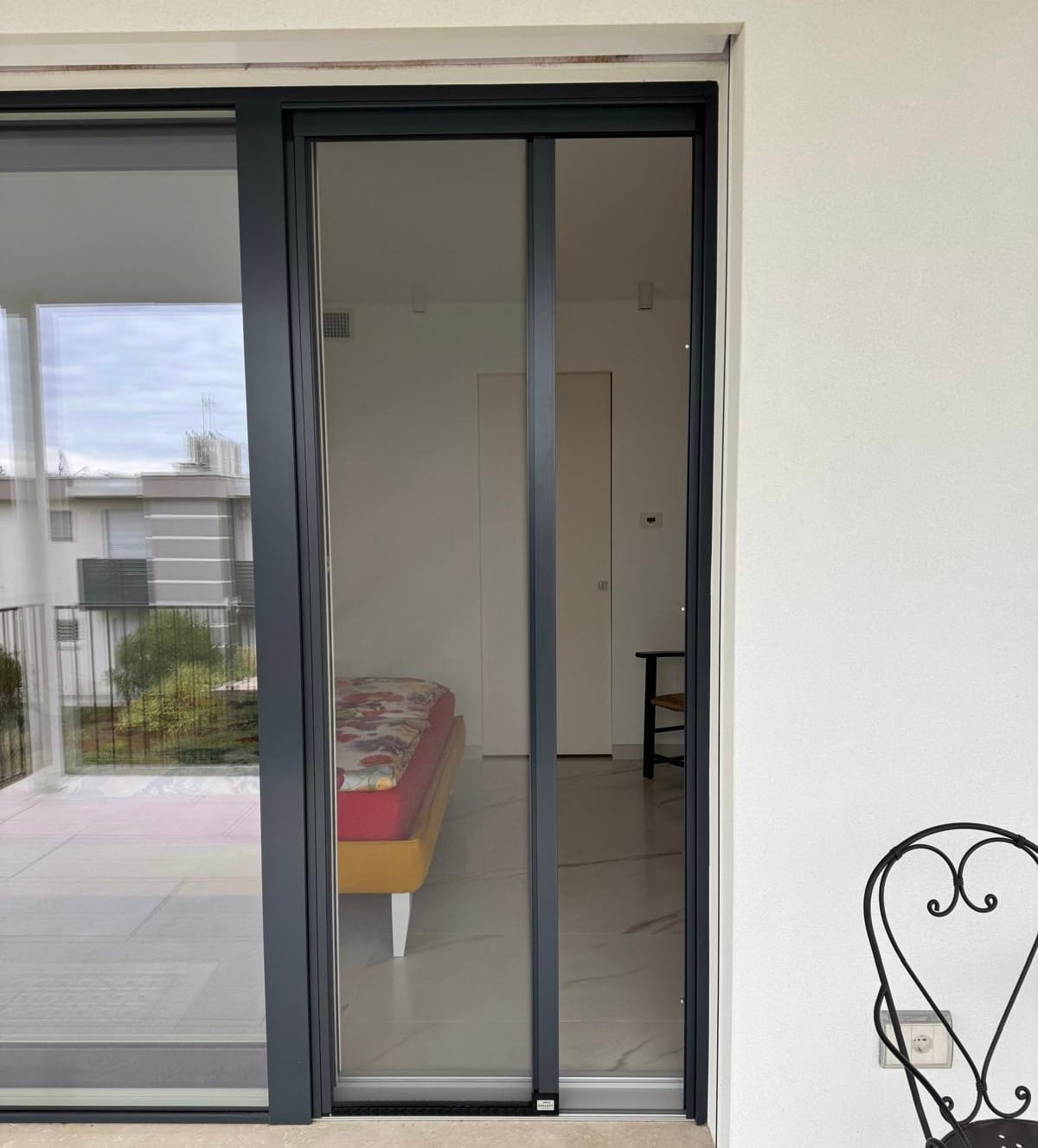 Le zanzariere a scorrimento laterale senza guida a terra sono composte esclusivamente da un cassonetto e da una guida superiore. Sono ideali per eliminare barriere architettoniche e per chi desidera un design moderno e minimale. Grazie alla “barra maniglia” le zanzariere possono essere bloccate in qualsiasi posizione restando sempre in tensione.