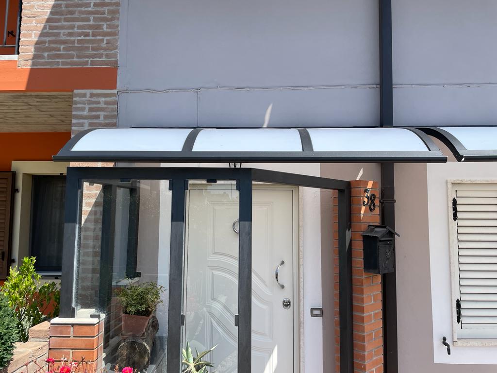 Possiamo fornirti ed installare una pensilina su misura per le tue esigenze, con una copertura sagomata che si adatta perfettamente al tuo muro e alla gronda frontale. Le mensole in acciaio inox o alluminio verniciato assicurano un supporto solido e resistente, mentre l’opzione di illuminazione a LED a risparmio energetico aggiunge un tocco di modernità e funzionalità.